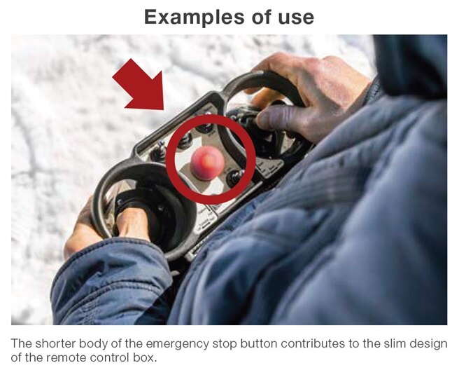 These switches are used as emergency stop devices that operators can operate manually when they sense danger at production sites, or when they sense the possibility of abnormalities or damage to machinery or equipment. In terms of environmental considerations, these products have been developed with features such as a shorter body than conventional models, and consideration for product disposal.